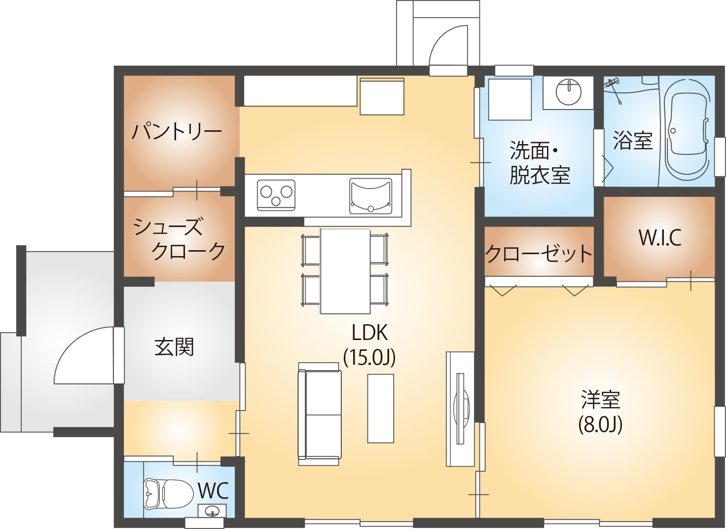 - 洗面→脱衣→ランドリールーム→WICが一直線