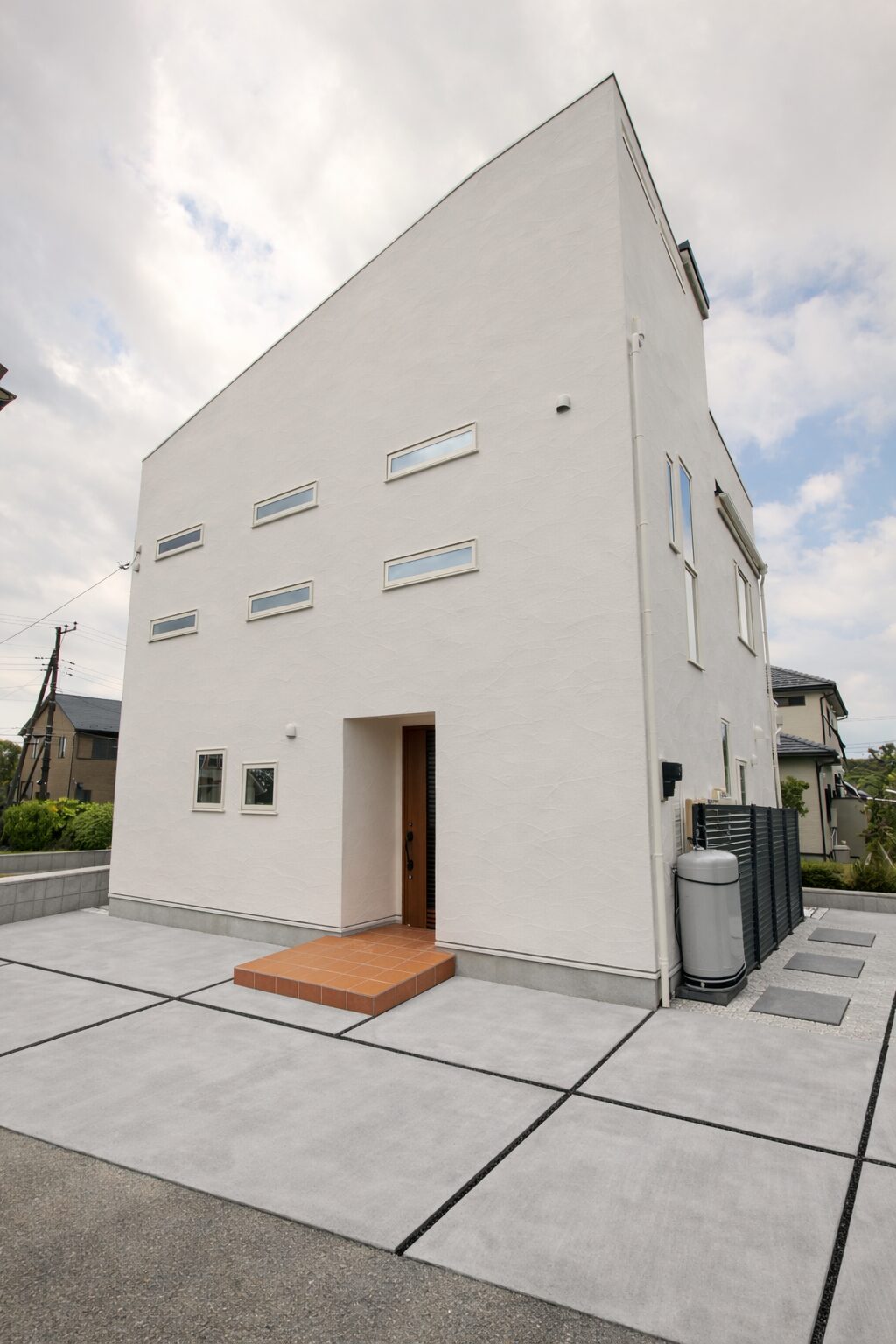 四角いフォルムの洗練されたデザインは、無駄を削ぎ落としたミニマルな美しさを持ちつつも、存在感のある佇まいを演出しています。シンプルでありながらも、どこか個性を感じるかっこいい住まいが完成しました。
